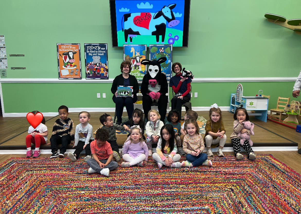 Continuous scheduling in process: Moozie visits preschools and elementary school classrooms for dialogic readings of Moozie’s favorite books and stories.